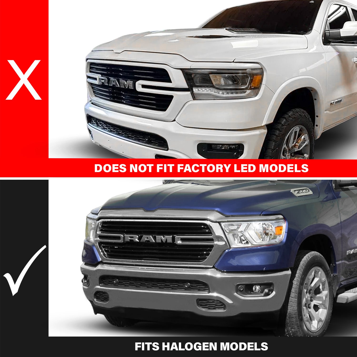 RAM 1500 (NEW BODY) 19-24 FULL LED PROJECTOR LIGHT BAR HEADLIGHTS BLACK W/ INITIATION & SEQUENTIAL (FOR HALOGEN MODELS ONLY)