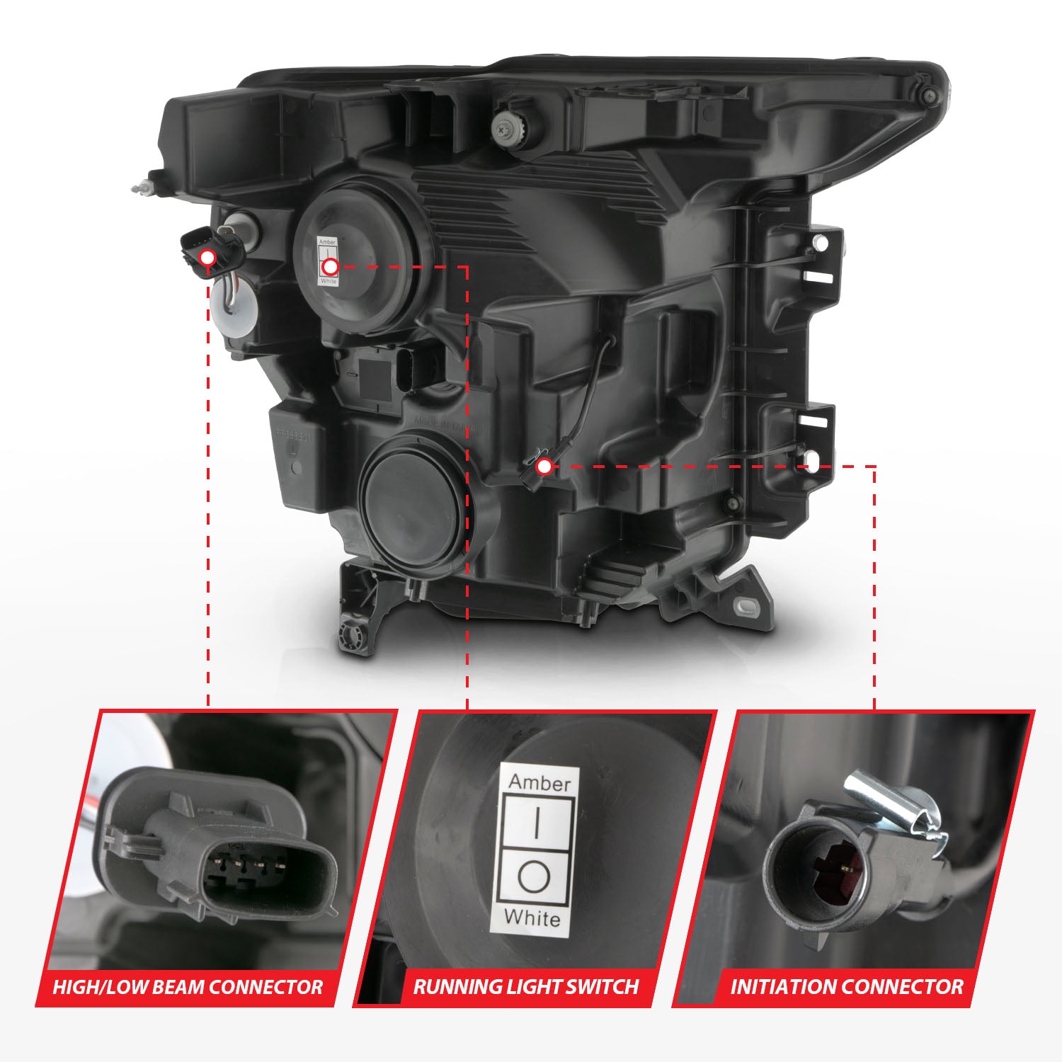 | Feature | Initiation, Sequential, LED, LED High Beam, LED Low Beam, LED DRL, LED Bar, LED Turn Signal, and Projector |