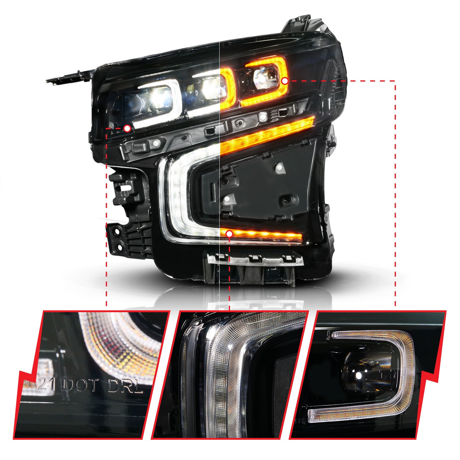 CHEVY TAHOE/SUBURBAN 21-24 Z-SERIES FULL LED PROJECTOR HEADLIGHTS BLACK W/ DRL SWITCH, INITIATION, & SEQUENTIAL